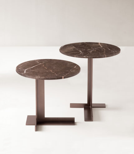 The Accento B table features a refined contemporary design. Its sculpted ceramic tabletop adds a sleek and luxurious aesthetic with natural stone texture. The base is crafted from solid steel panels, ensuring excellent stability and a bold architectural look. This combination of premium ceramic and a minimalist steel structure creates a sophisticated centerpiece suitable for modern interior settings.