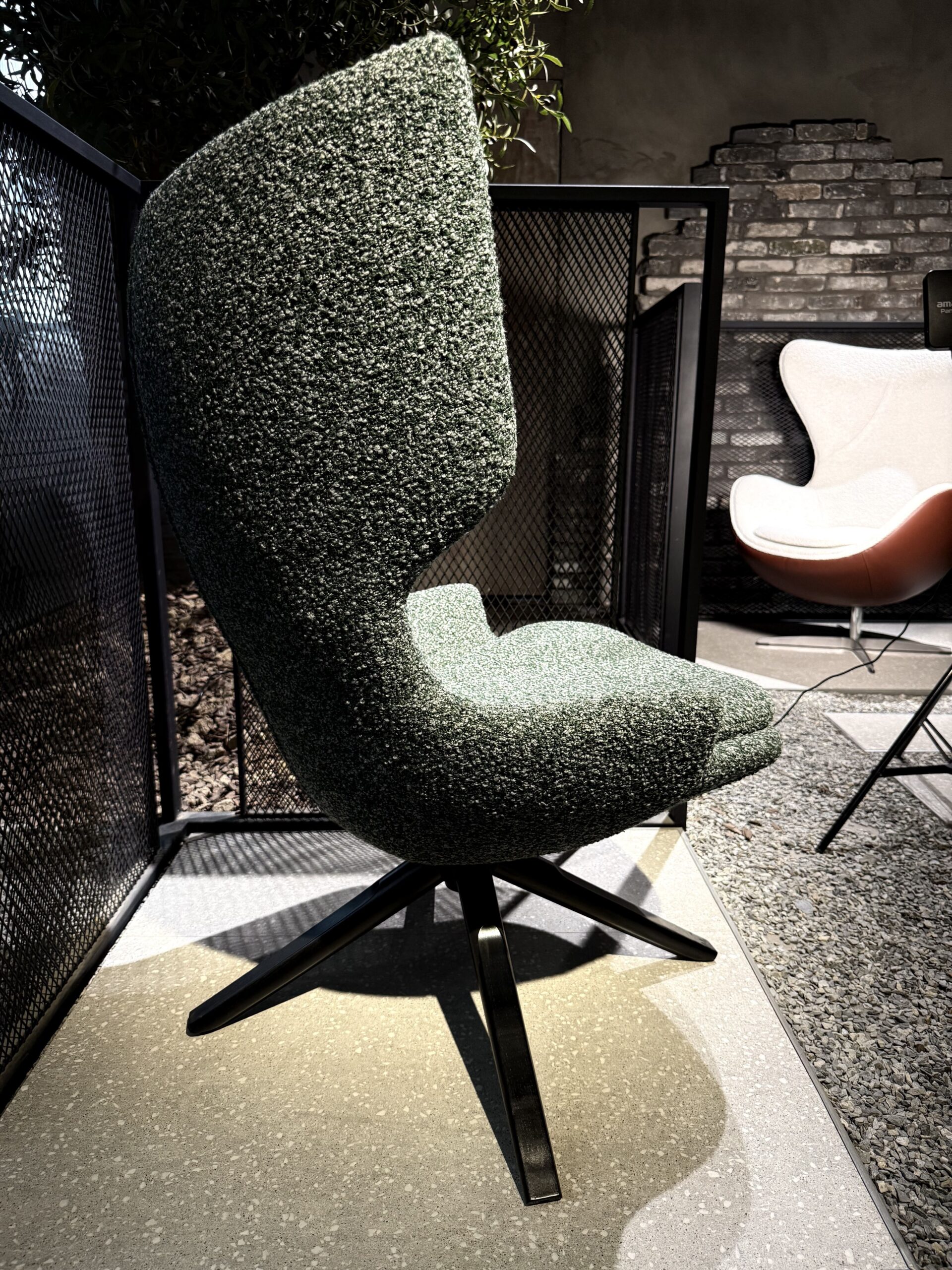 The Malta W lounge chair features a striking and modern design. The high back and winged sides provide both comfort and a sense of privacy. Its sleek, curved lines create a contemporary aesthetic, while the swivel base offers stability and flexibility. Ideal for modern interiors, this chair combines style and functionality, making it a standout piece in any room.