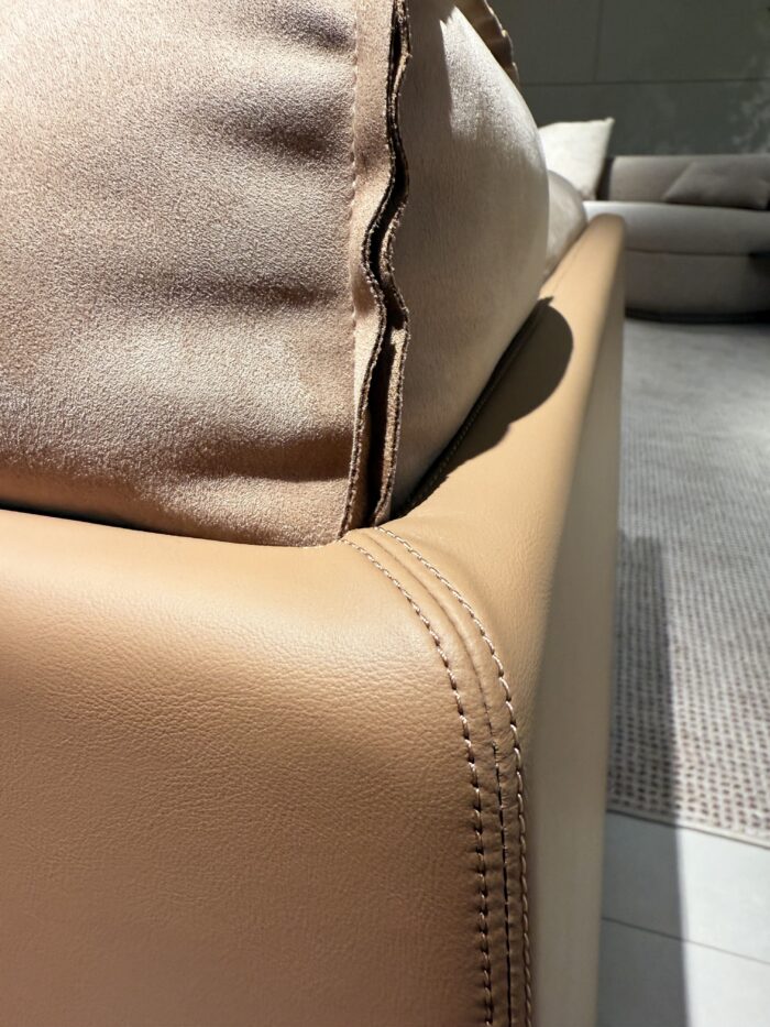 Wide armrests enhance the modern aesthetic while providing additional comfort and support. The sofa’s low profile and sleek design allow it to seamlessly fit into different spaces, from cozy apartments to spacious living areas.