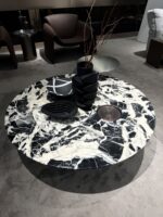 The Signorile Table embodies Italian sophistication through sculptural form and exquisite materials. Crafted from premium Bvlgari Black marble, its bold veining pattern creates a striking visual statement in any interior. The centerpiece features a rotating (turnable) marble top, offering both functionality and elegance for refined dining or lounge spaces. Designed for modern luxury environments, Signorile balances craftsmanship and innovation — where timeless design meets skilled artistry.