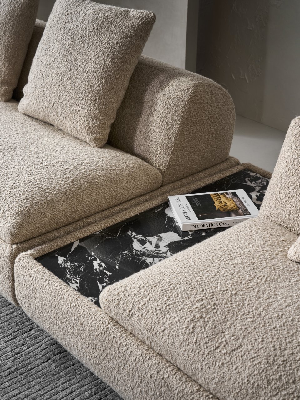 A masterpiece of Italian design, Sontuosità blends comfort and sophistication with effortless balance. Its generous feather-filled cushions provide a plush, sink-in experience, while the integrated marble details add a touch of timeless elegance. Designed for refined living, Sontuosità embodies luxury through both material and form.