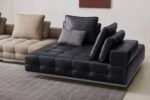 The Vento CL sectional sofa features a striking combination of taupe and black leather, creating a modern and sophisticated look. The modular design allows for versatile configurations, making it adaptable to various room layouts.